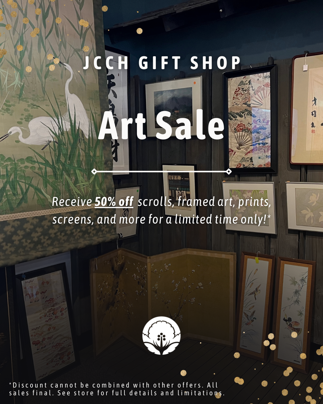 ART SALE: Beginning on Wednesday, October 1, 2025, our unique selection of scrolls, framed art, prints, screens, and more will be offered at 50% off marked prices for a limited time only at the JCCH Gift Shop.*